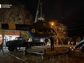 Увечері 17 вересня у Полтаві на перехресті вулиць Спаської та Пилипа Орлика почали монтаж вертольота «Мі-2» на постаменті, де раніше стояв пам’ятник на місці відпочинку Петра І.