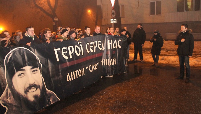 У Полтаві пройшов марш фанів "Ворскли", присвячений пам'яті полтавського бійця Антона Грицая ("СІФ"), який загинув під Маріуполем. Йому було 26 років, він помер рік тому. Фото Олега Журавльова.