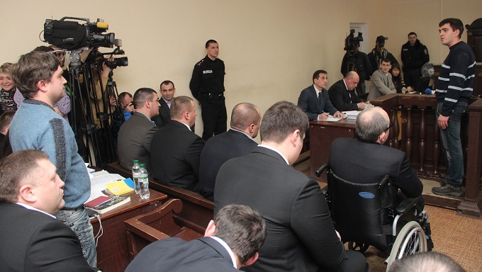 У Київському районному суді Полтави триває чергове засідання у справі проти мера Харкова Геннадія Кернеса. Сьогодні допитують свідків нібито викрадення та катування євромайданівців. Фото Олега Журавльова.