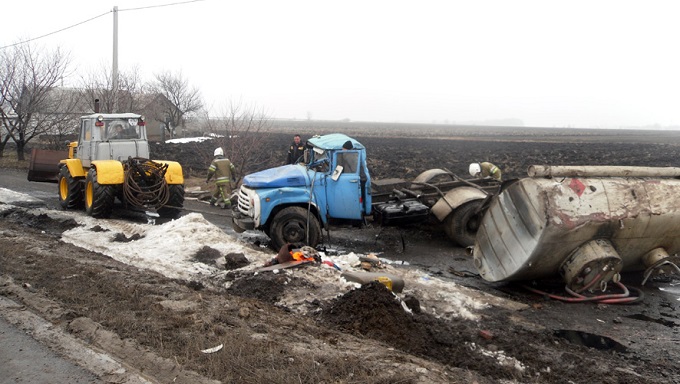 У селі Циганське під Полтавою на трасі Київ-Харків перекинулася цистерна з дизельним пальним - частина рідини вилилася. Цистерну піднімали трактором, дорогу мили з брандспойтів.