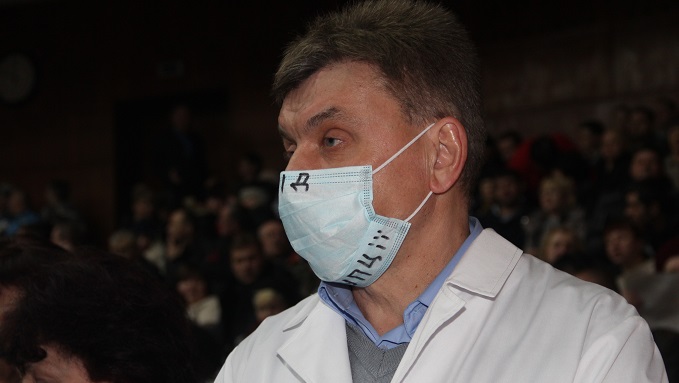Сьогодні вранці двічі не могли розпочати засідання обласної ради - роботу блокували "активісти", а голова оголошував перерву. Фото Олега Журавльова.
