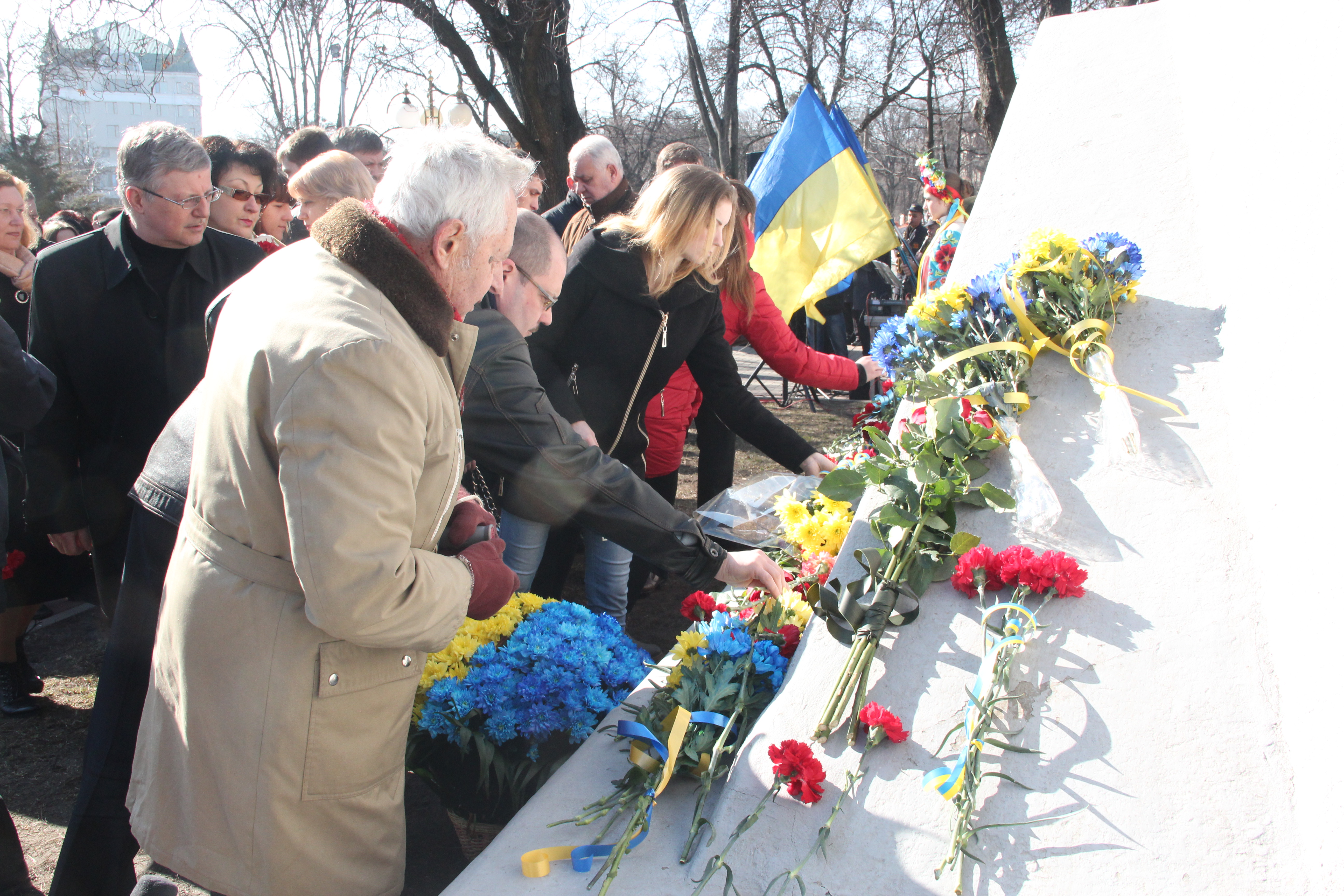 Поруч із пам'ятником Тарасу Шевченку відзначили 202-гу річницю від дня його народження. Участь у заході взяли близько 350 осіб - зокрема, молодь і студенти. Фоторепортаж Олега Журавльова.