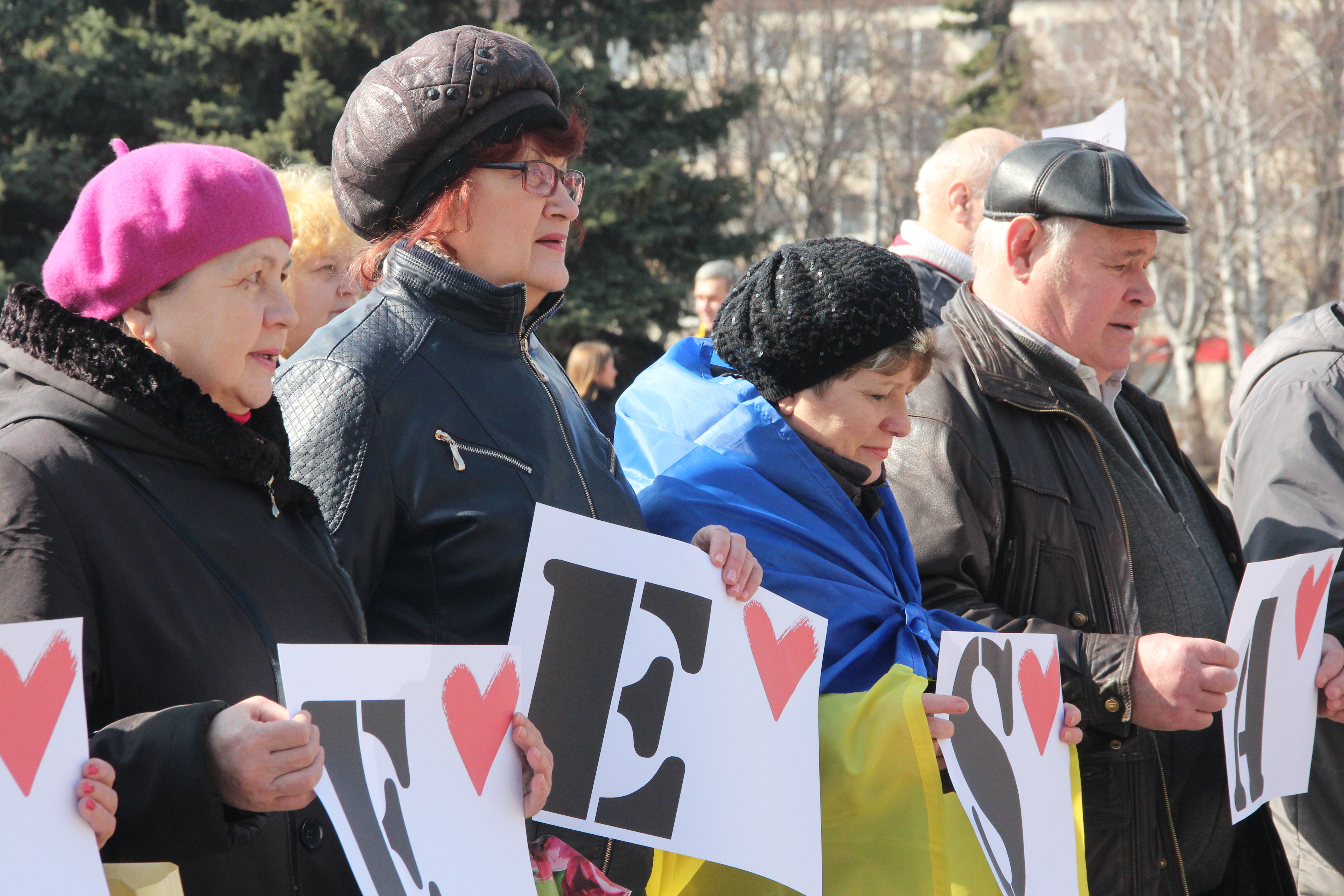 В обідню перерву, з 12:00 до 13:00, під будівлею облдержадміністрації було велелюдно. Близько 500 полтавців прийшли "морально підтримати" Надію Савченко, яку утримують та судять в Росії. Якраз сьогодні – п'ятий день її сухого голодування через ненадання їй останнього слова під час процесу.