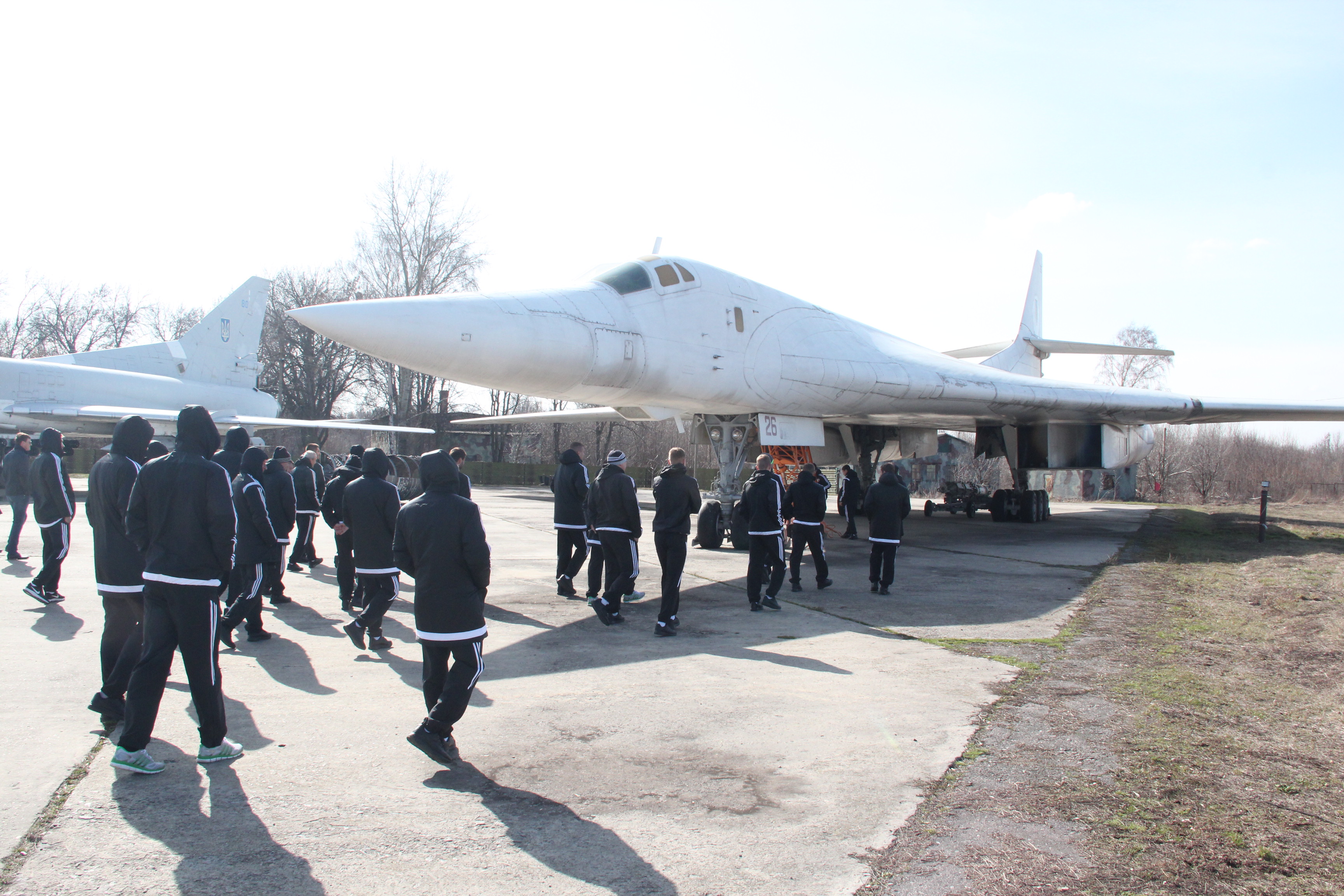 Для футболістів полтавської "Ворскли" влаштували екскурсію музеєм дальньої авіації в авіамістечку Полтави. Футболісти й тренери оглянули бойові літаки і вертольоти, послухали про історію авіадивізії. Фото Олега Журавльова.