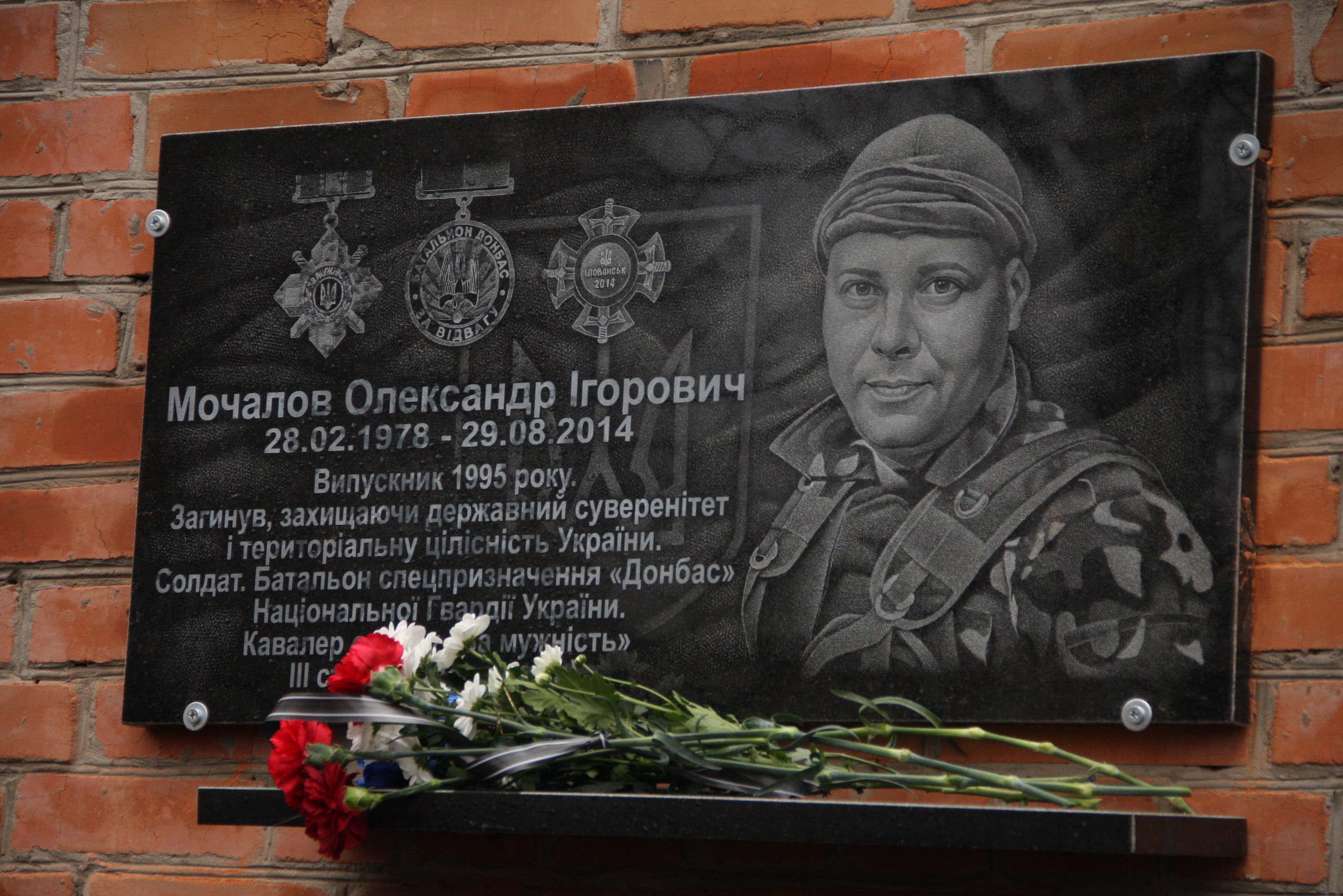 На фасаді 38-ї школи в Полтаві відкрили меморіальну дошку полтавцю Олександру Мочалову, бійцю батальйону "Донбас", який загинув 29 серпня 2014 року, був випускником цієї школи.