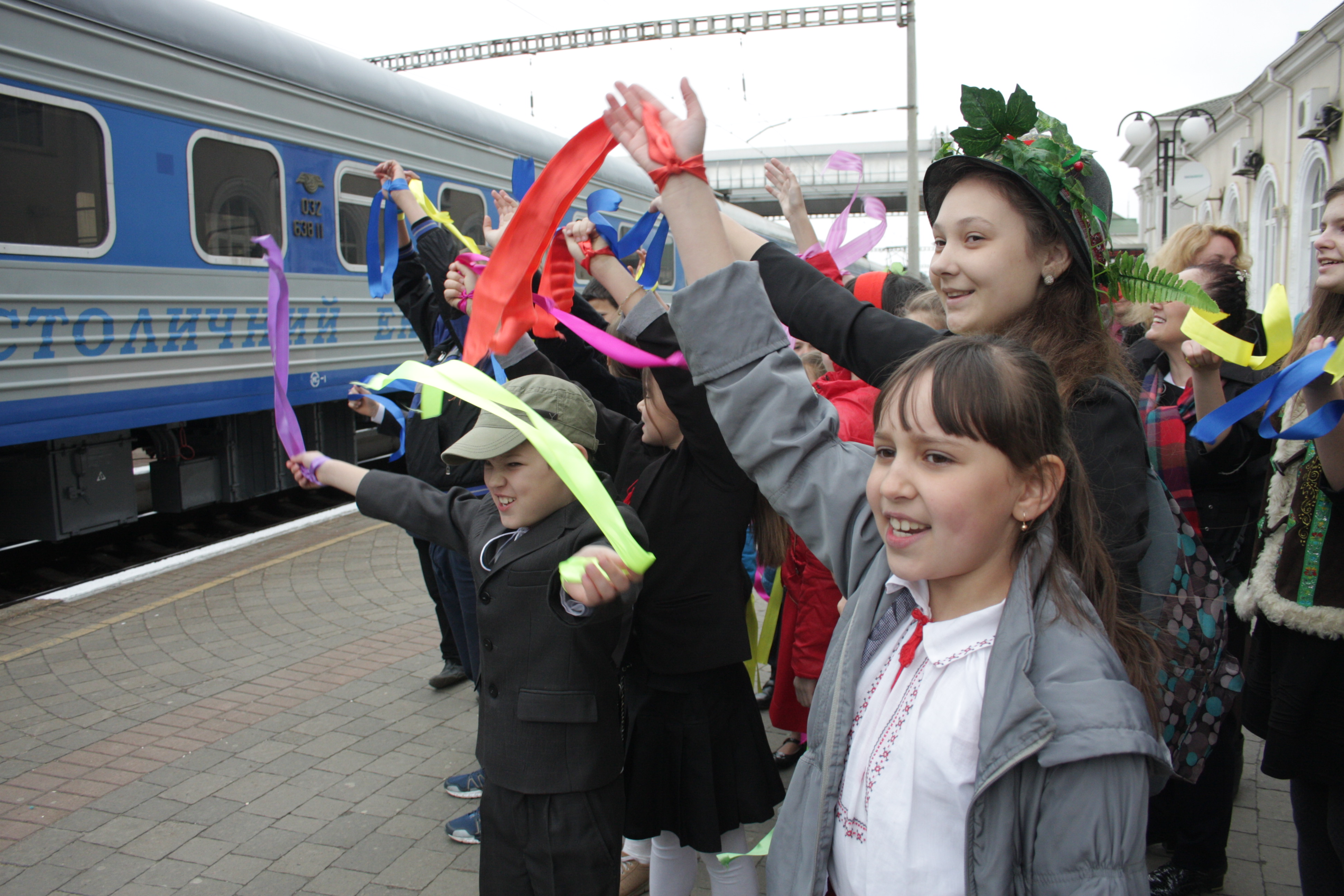"Агітаційний потяг" відвідає шість населених пунктів. У кожному волонтери проводитимуть майстер-класи, влаштовуватимуть виставки. Сьогодні поїзд виїхав із Києва і прибув до Полтави. Фото Віталія Скворцова.