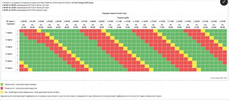 ПАТ «Полтаваобленерго» повідомляє, що у зв'язку зі складною ситуацією в енергосистемі України, в Полтавській області застосовано графік погодинних відключень: