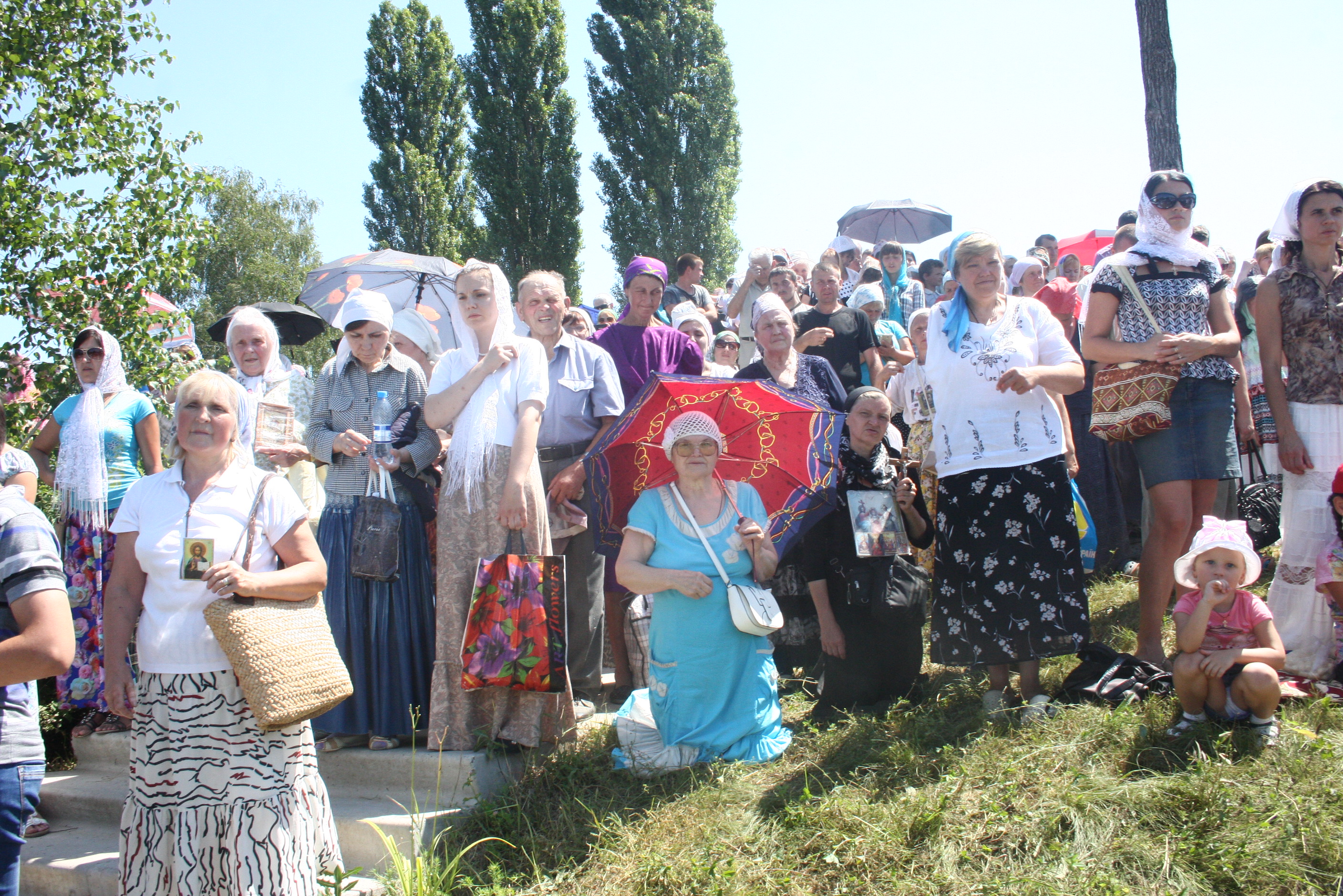 До Полтави дійшли учасники так званої ходи. Близько 70 людей прибули автобусами, пройшли ходою до Горбанівки, після чого попрямували на молебень до Свято-Макарівського собору. Фото Віталія Скворцова.