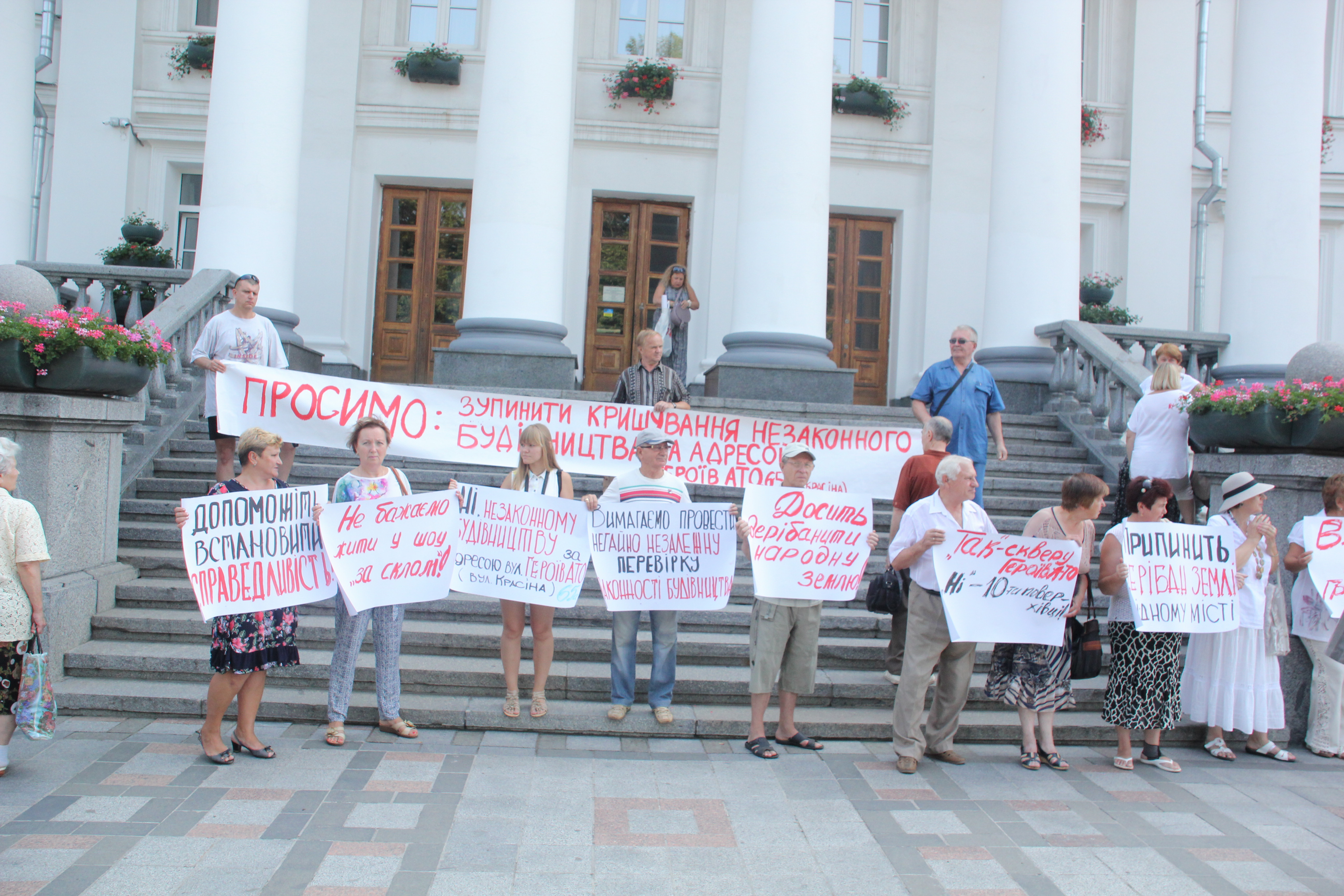 Група полтавців пікетувала міську раду з вимогою припинити незаконне, на їхню думку, спорудження багатоповерхівки на Героїв АТО, 65. Фото - Віталія Скворцова.