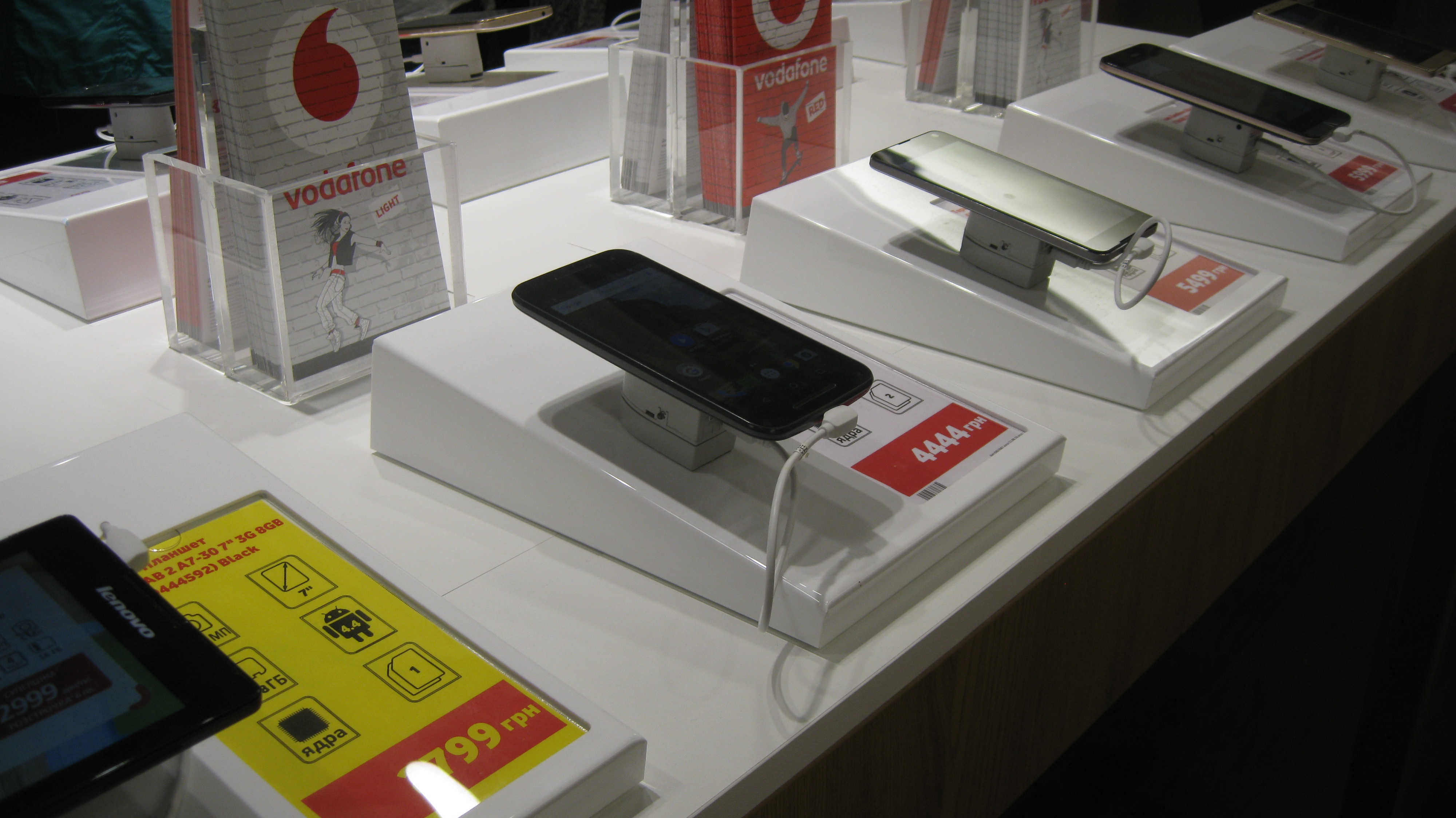 "Vodafone" приніс в Україну європейські стандарти обслуговування та прозорі тарифи. Головний принцип роботи тут – бути ближче до клієнта. Це відображається навіть в одязі консультантів у стилі смарт-кежуал. У магазині існує вільний доступ до інформації, експерти із задоволенням готові відповісти на всі питання. Для малечі передбачена комфортна дитяча зона.