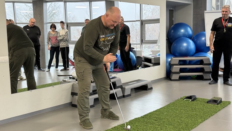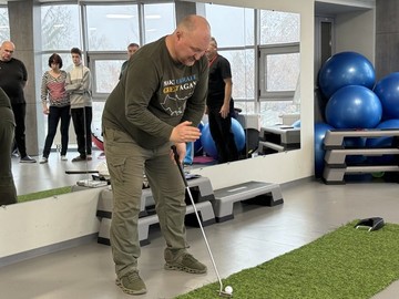 В рамках проєкту відновлювальної реабілітації в полтавському спорткомплексі «Акваарена» проводять безплатні заняття з гольфу для учасників бойових дій, ветеранів, військових, поліцейських та рятувальників.