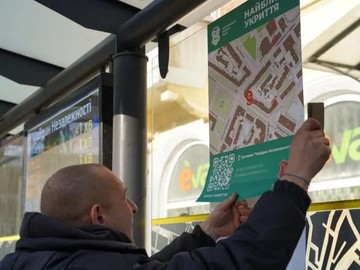 У Полтаві на зупинках транспорту встановлюють спеціальні покажчики, які містять адреси найближчих захисних укриттів. На інформаційних табличках також розміщені QR-коди, що ведуть на електронну мапу укриттів міста. Це дозволяє мешканцям швидко знаходити найближчі безпечні місця у разі ворожої атаки.