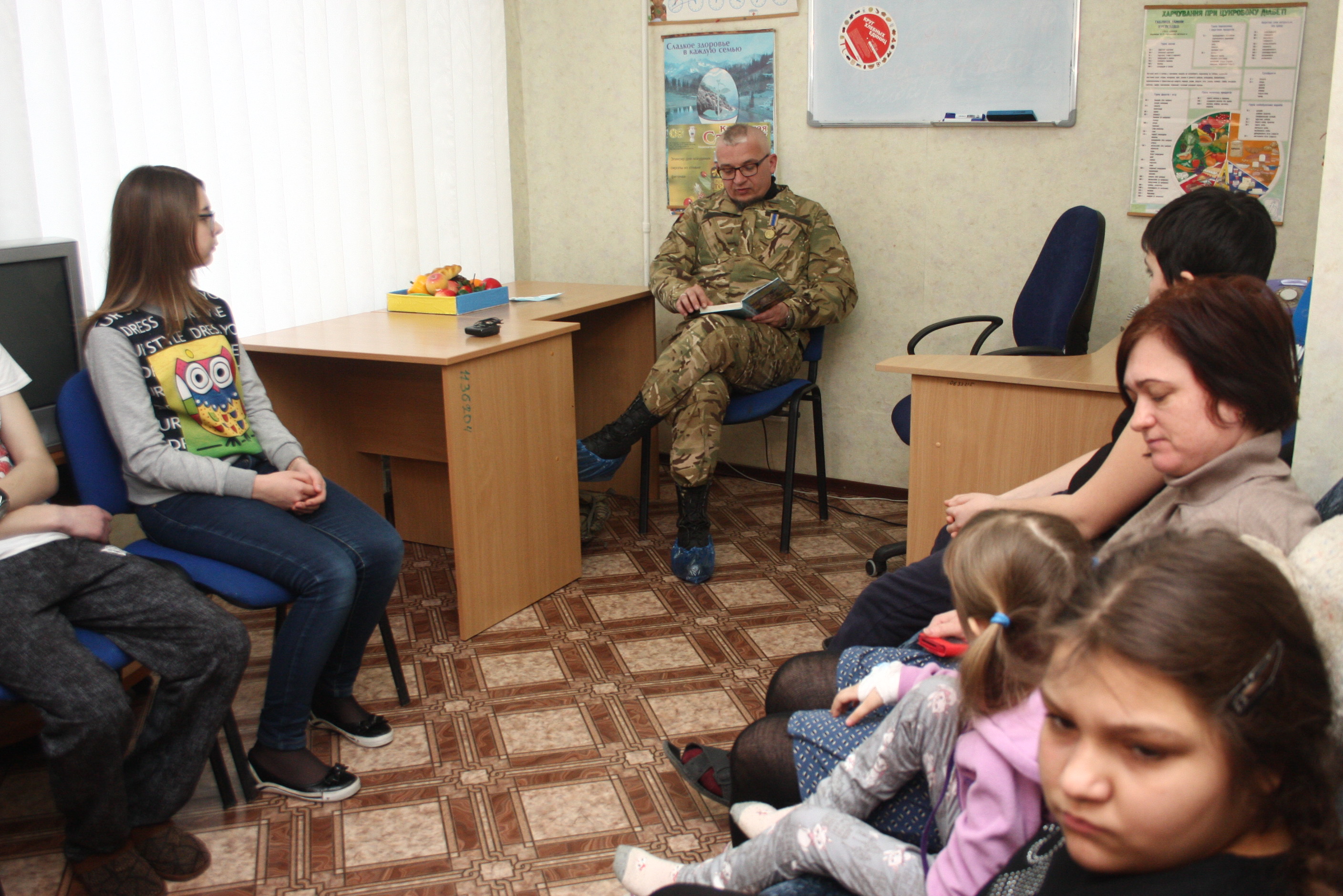У Полтаві в дитячій лікарні АТОвці читатимуть пацієнтам книжки. Перший гість - Валерій Довженко, боєць 92-ї ОМБ, керівник Центру допомоги учасникам АТО. Прочитав казку "Тореадори з Васюківки" Всеволода Нестайка.