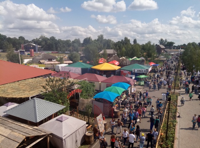 Сьогодні з ранку над торговищем — тепла та ясна погода. На честь Дня незалежності України культурна програма ярмарку розпочалася на головній сцені — з привітання організаторів та концерту за участі лауреата всеукраїнських і міжнародних конкурсів Володимира Ладивіра та групи "Яри".
