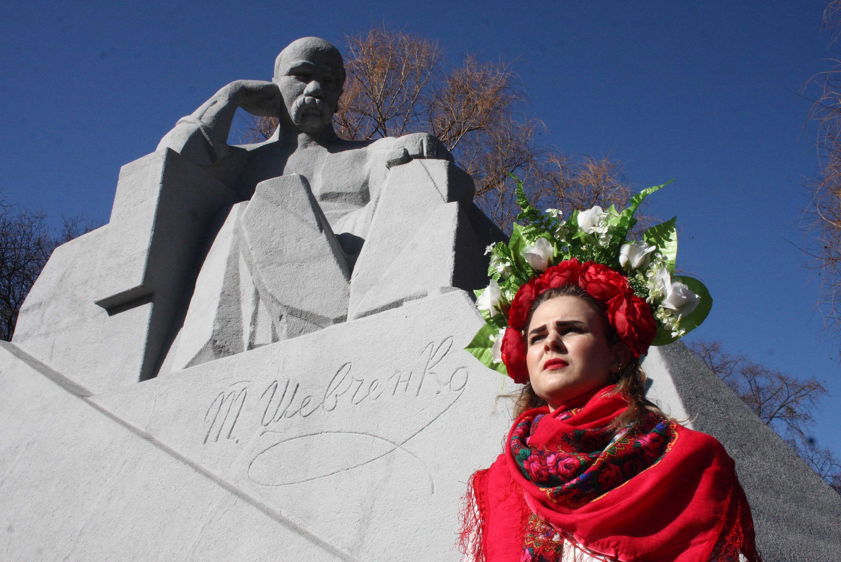До пам'ятника Тарасу Шевченку в Полтаві урочисто поклали квіти з нагоди дня народження Кобзаря. Фоторепортаж Олега Журавльова.