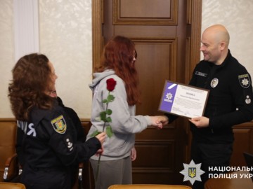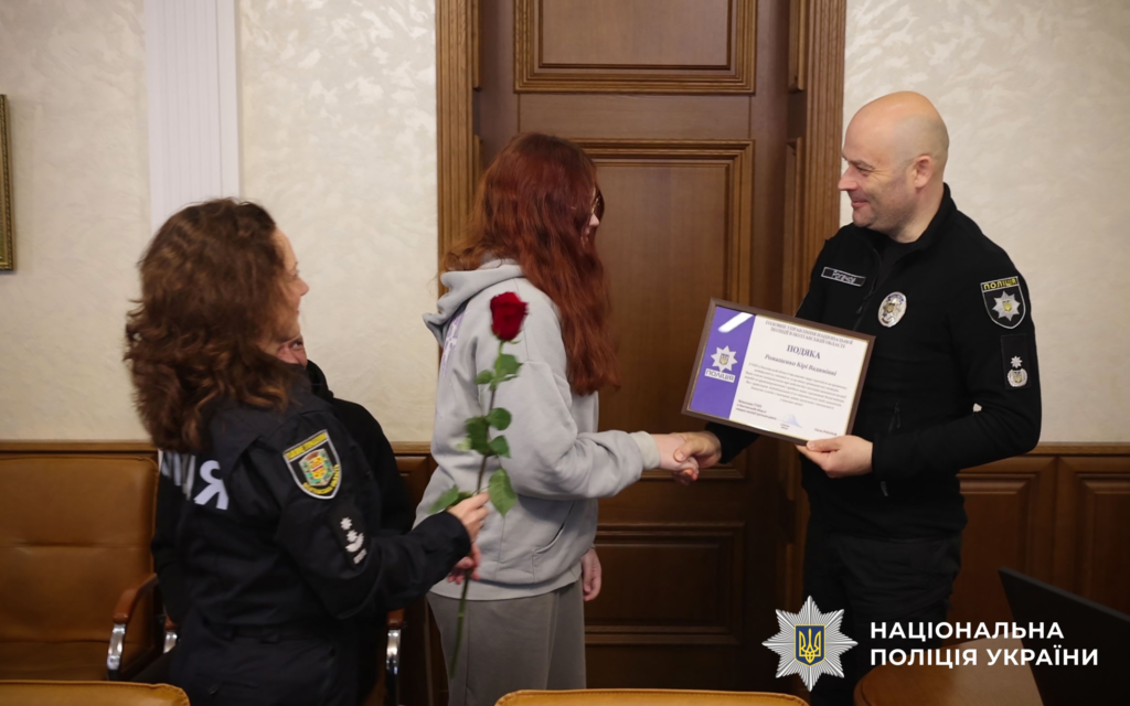 За свідому позицію та небайдужість школярок відзначили подяками. Їх отримали Станіслава, Кіра та Оксана. Нагороди вручив начальник Головне управління Національної поліції в Полтавській області Євген Рогачов.