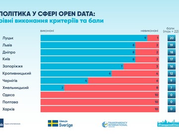 У програмі "Прозорі міста" щодо євроінтеграції Полтава не набрала жодного бала за розвиток системи відкритих даних. Аналіз охопив 11 міст і 40 критеріїв відповідності ЄС принципам демократичного самоврядування.