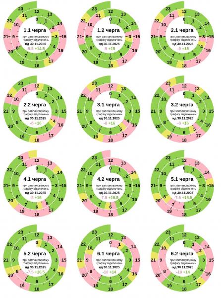 Зверніть увагу, що півгодини на початку і в кінці дається на перемикання черг!