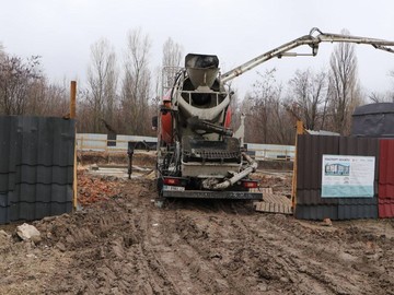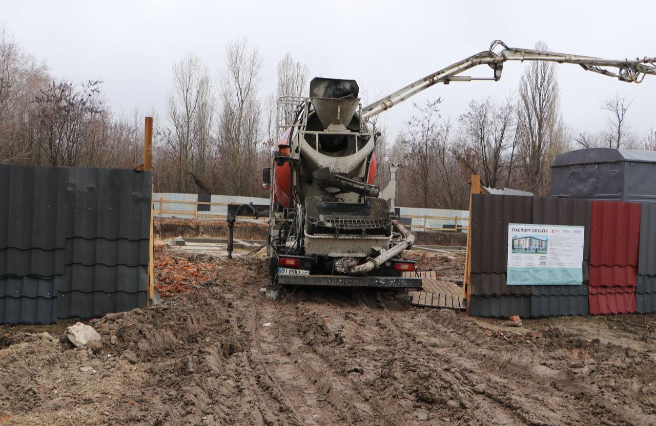 Наразі підрядник зосереджений на бетонуванні та армуванні фундаменту.