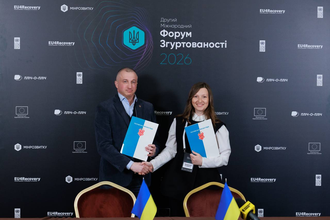 Полтава офіційно закріпила співпрацю зі Слов’янськом і Бахмутом у межах платформи «Пліч-о-пліч». Під час форуму в Києві меморандуми підписали Катерина Ямщикова, Вадим Лях та Олексій Рева.