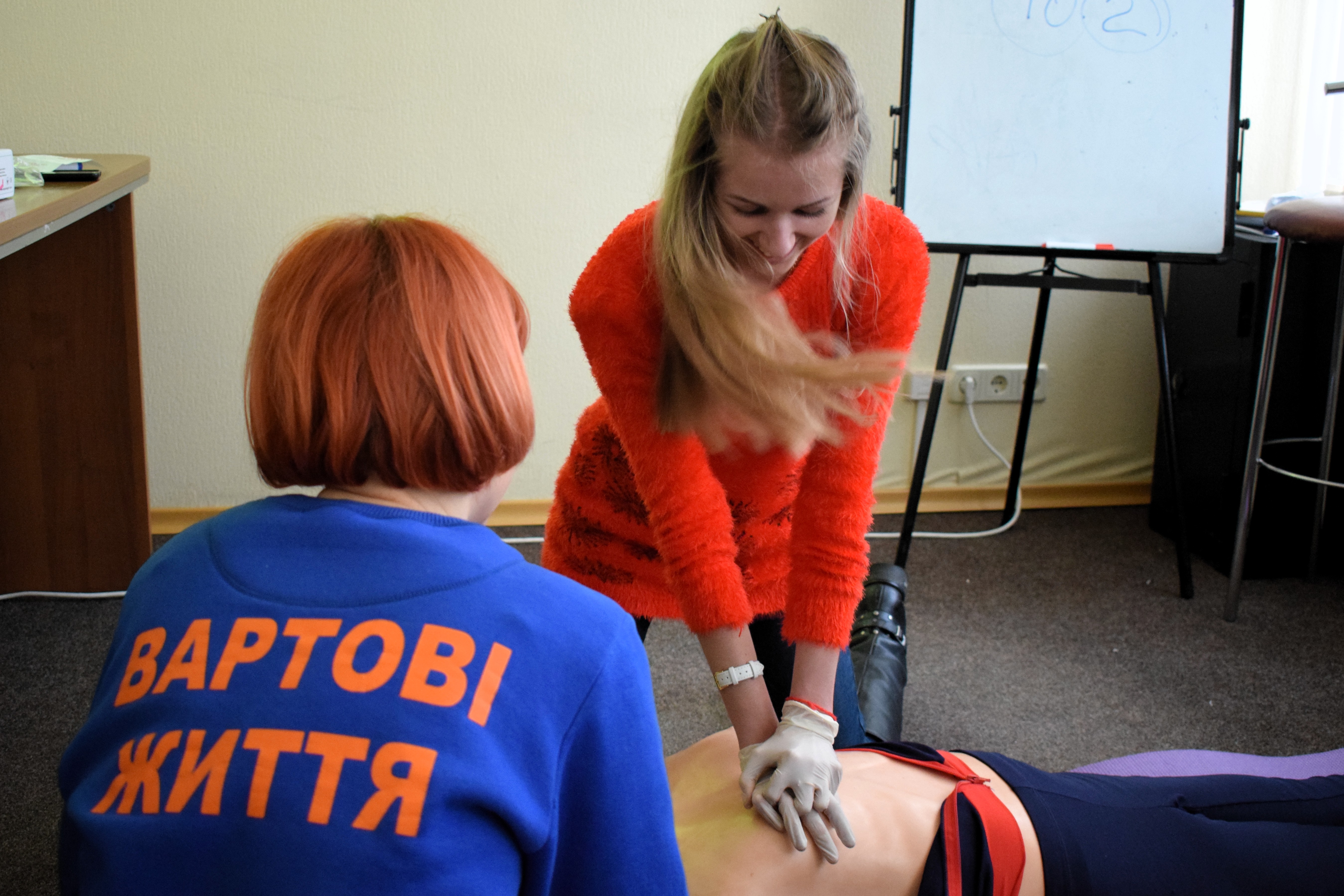 Між зупинкою серця людини та остаточною смертю її мозку проходить 5-7 хвилин, тоді як швидка може їхати десять і більше хвилин. Урятувати життя людині, котра раптово втратила свідомість, навчали інструктори громадської організації "Вартові життя" Вікторія Лоза та Світлана Варвянська.