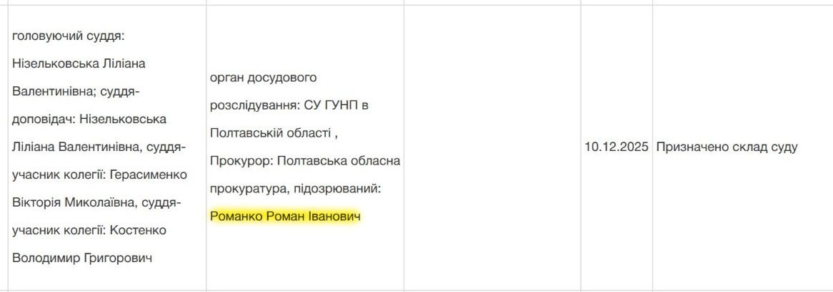 Полтавський апеляційний суд обрав запобіжний захід Роману Романку, колишньому працівнику правоохоронних органів, якого підозрюють у причетності до масштабної корупційної схеми.