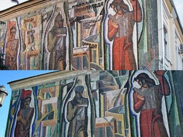 Фейсбук-сторінка «Кременчук офіційний» повідомила, що переозначенням мозаїки опікувалася кременчуцька художниця Інна Мосієнко.