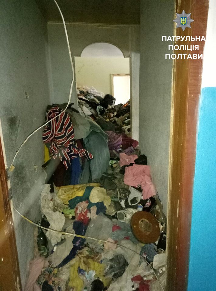 Полтавські патрульні разом із працівниками МНС дістали дідуся з-під звалища сміття у власній квартирі.
