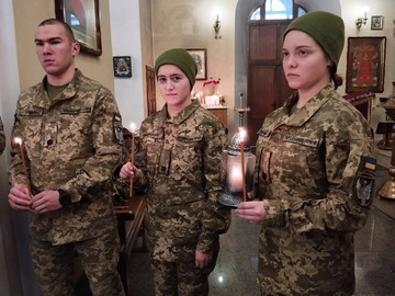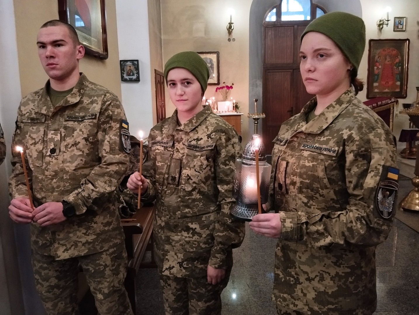 У Свято-Успенському соборі в Полтаві скаути з організації «Пласт» передали Віфлеємський вогонь миру військовослужбовцям 18-ї окремої бригади армійської авіації і курсантам військового коледжу сержантського складу.