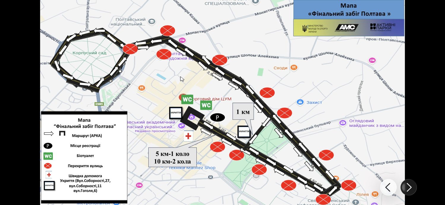 Проведення забігу додасть клопоту водіям та пасажирам — буде обмежено рух транспорту в центрі міста. Про це повідомили у Полтавській ОВА.