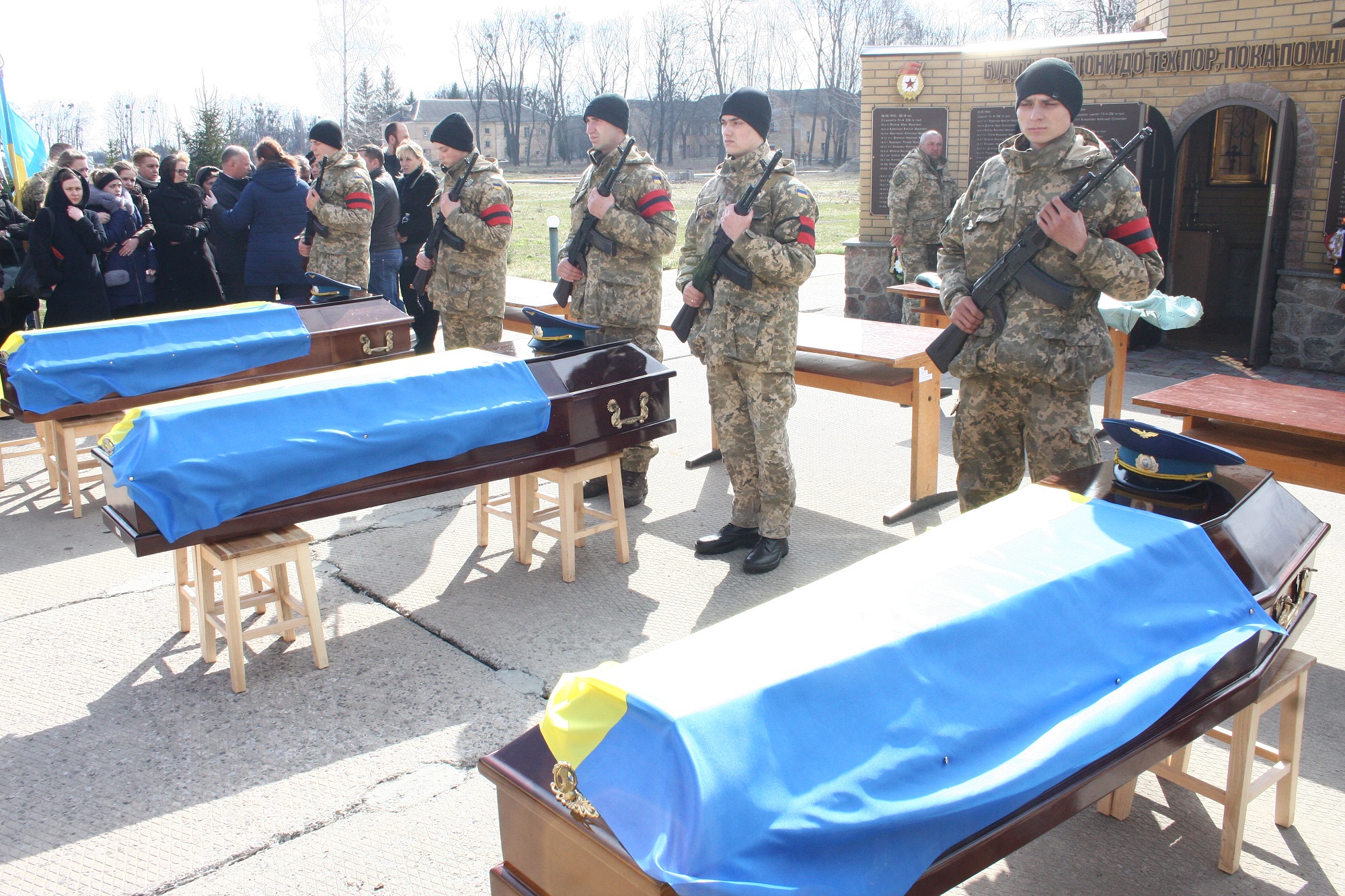 Відбулося прощання з полтавськими військовими − підполковником Євгеном Волошиним, капітаном Дмитром Мовчаном і старшим лейтенантом Романом Кандулом.