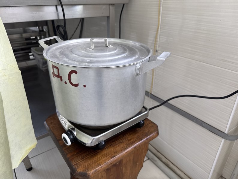 У дошкільному закладі Опішнянської громади кухарі через тривалі відключення електрики працюють у дві зміни та починають раніше. Поки немає світла, їжу готують на невеликих електроплитках, підключених до генератора: