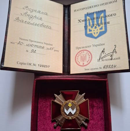 33-річного жителя Котелевської громади Андрія Возняка нагородили орденом Богдана Хмельницького ІІІ ступеня.