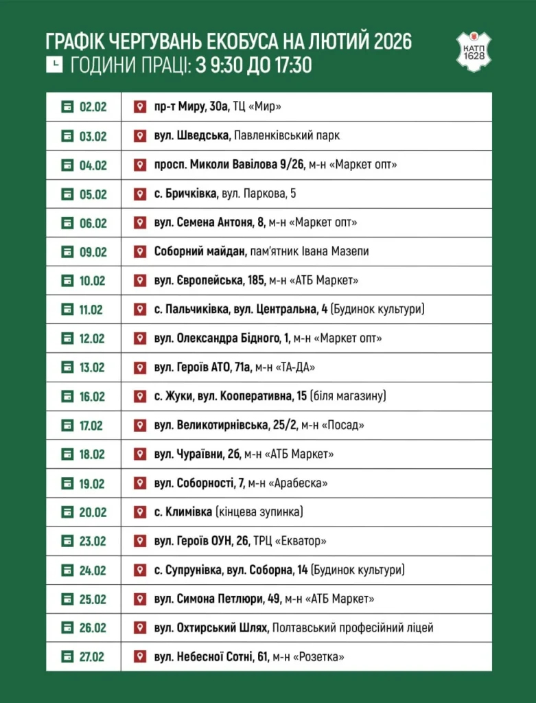 Протягом лютого Полтавою курсуватиме екобус, який збирає небезпечні відходи.