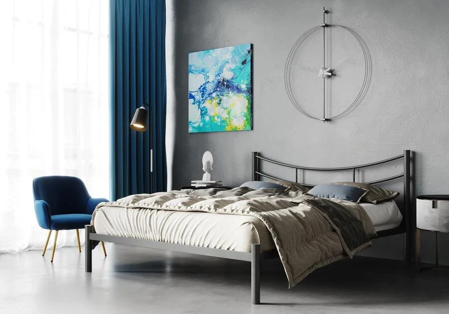 Кровать железная может казаться холодной и «жесткой», но уют легко создать с помощью текстиля и освещения. Вам в помощь мягкие пледы, многослойные покрывала, декоративные подушки. Дополните интерьер мягким светом – бра, гирляндами или торшерами – и ваша спальня заиграет новыми красками.